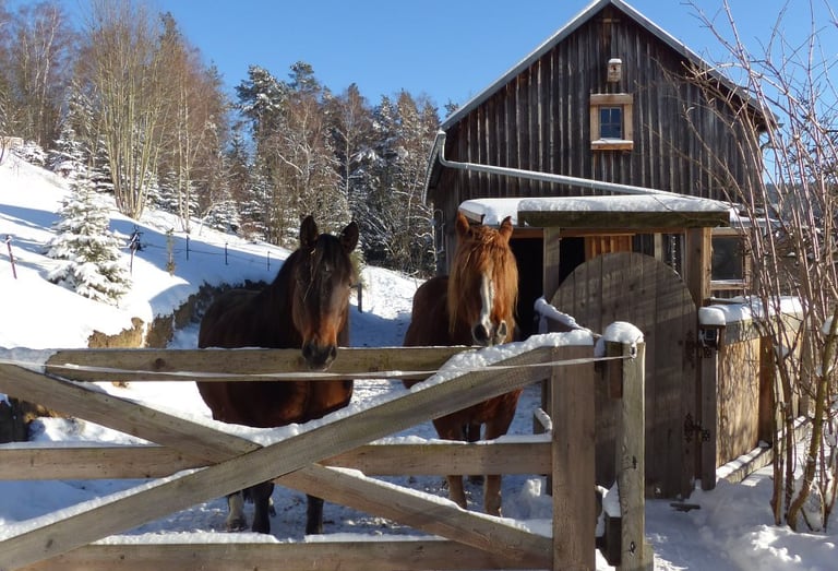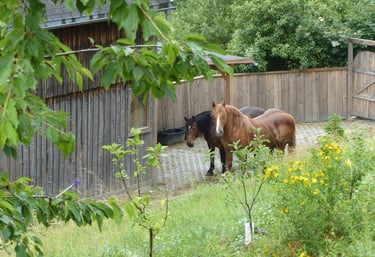 Mitten auf dem Land, umgeben von Wiesen und Pferden. Eine Welt in Ruhe und kreativer Entfaltung.