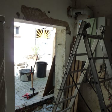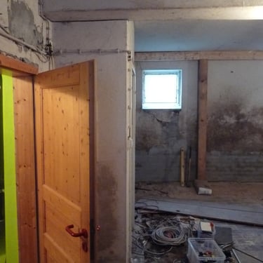 Hier kann man in etwa nachempfinden was wir allein 2025 schon geleistet haben in diesem Raum. Man sieht aber nicht den Edelstahlschornstein außen, der angebaut wurde und all die Nebenarbeiten, wie verlegen der elektrischen Leitungen, Abwasser- und Wasserleitungen, etc....